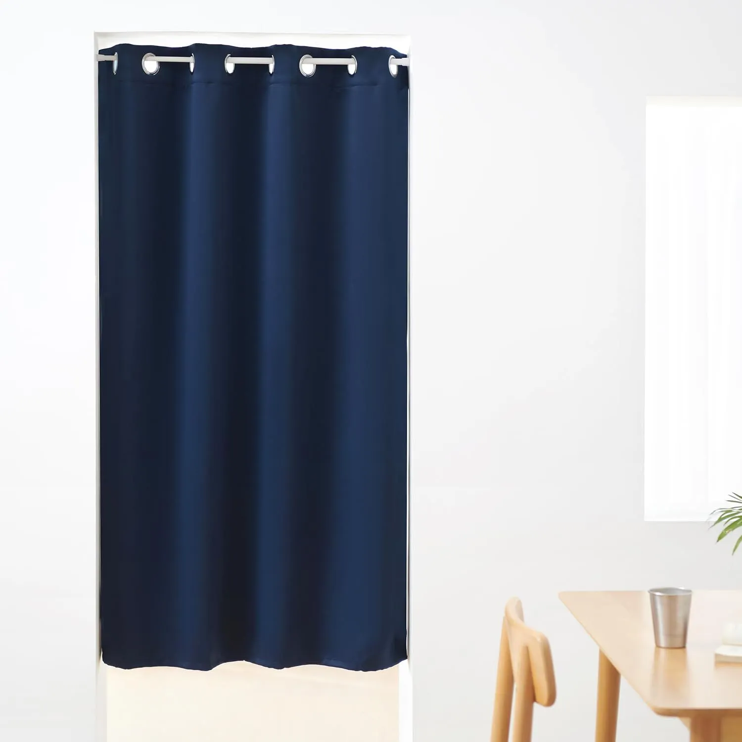 洗濯可能 北欧 省エネ 遮熱 階段 防音 玄関 保温 厚手 キッチン 無地 ドアカーテン リビング 突っ張り棒 目隠し 出入り口 ハトメ仕様 暖簾 ロング のれん 断熱防寒 (幅150cm×丈180cm・1枚組 遮光度99.99% 間仕切りカーテン ネイビー)