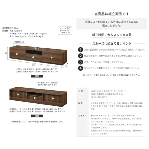ROBIN ロビン ローボード 背面収納テレビ台 ロビン 木目調 幅150cm ウォールナット★tm