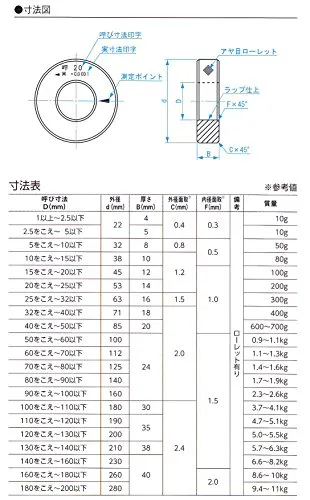 厚さB(mm) : 5・外径面取※C(mm) : 0.4・内径面取※F(mm) : 0.3・備考 : ローレット有り