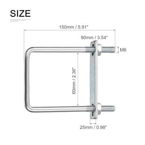 [Uボルト]:パッケージにはM8ネジサイズ、60mm / 2.36インチの内幅(適合ロッドサイズ)、および150mm / 5.91インチの総高さのシルバートーンのUボルトが2セット含まれています。
