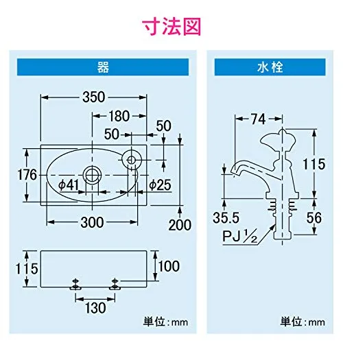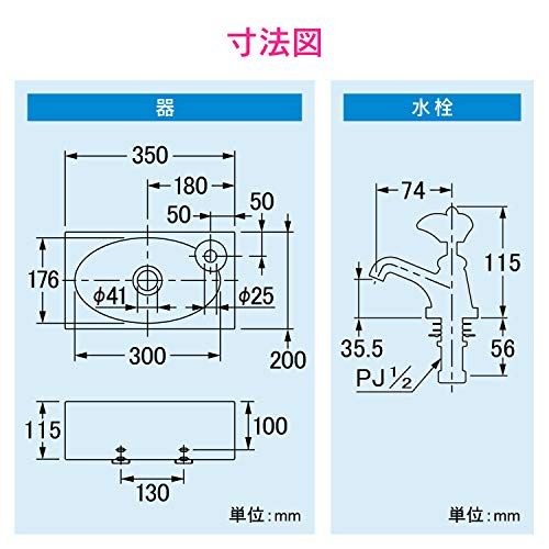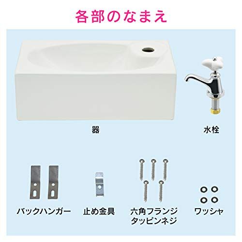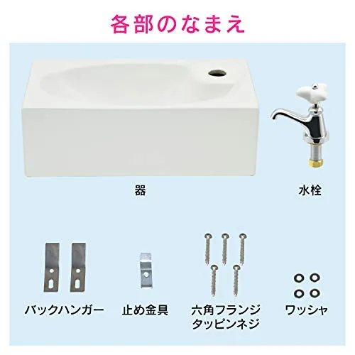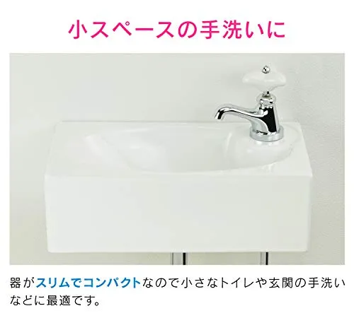 【特徴】 ・小スペースに適した陶器製の小型壁掛手洗器 ・スリムでコンパクトなので、トイレ・玄関の手洗いなどに最適 ・25ミリ規格の排水金具と組み合わせてください ・壁掛用のバッグハンガー(取付金具)付き ・陶器製ハンドル付きの立水栓