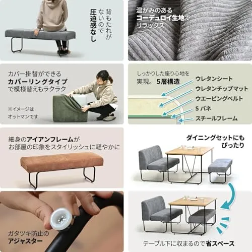 素材:スチールパイプに粉体塗装・生地(ポリエステル 85%、ナイロン 15%)・ウレタン