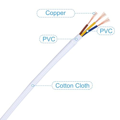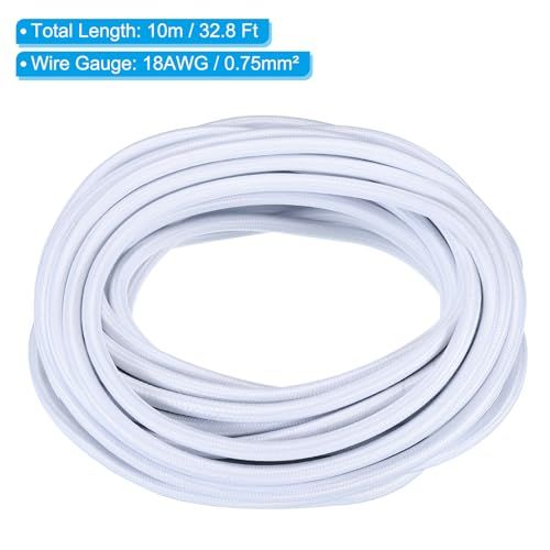 新品 PATIKIL ファブリック布カバーラウンドワイヤー 10 M 18AWG 3コア ヴィンテージ編み電気コード ペンダントライトDIYプロジェクト用 ホワイト