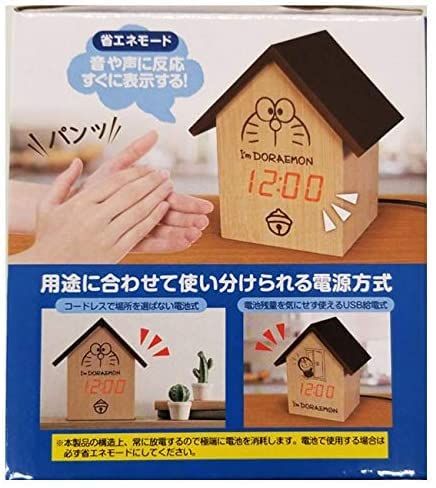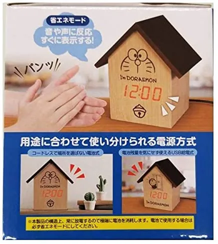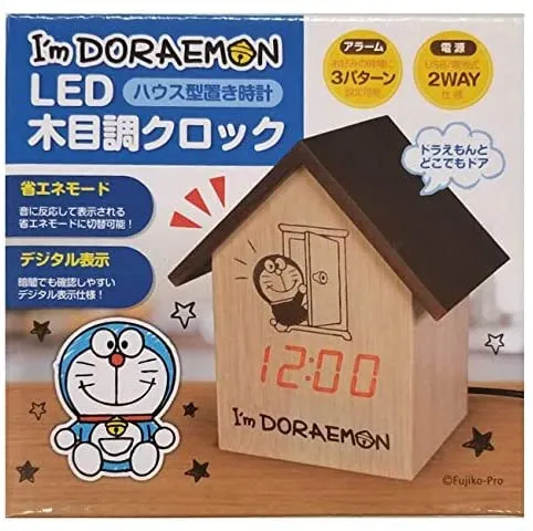 ドラえもんの可愛らしい表情が特徴的なLED木目調クロックです。ハウス型のデザインで、インテリアとしても魅力的な置き時計となっています。LEDディスプレイで時刻を鮮やかに表示し、木目調の素材感が温かみのある雰囲気を演出します。お子様の部屋やリビングルームにぴったりの、楽しく実用的な時計です。