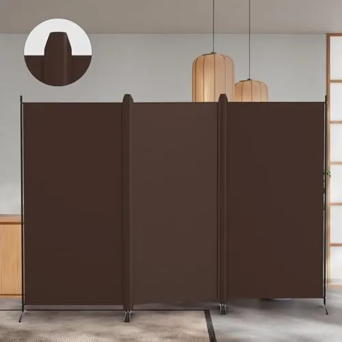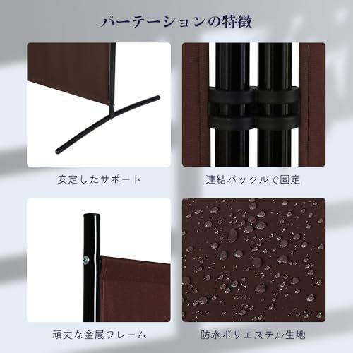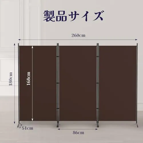 KELIXU パーテーション 間仕切り 3連 自立式 衝立 カバーストリップ付き 高さ1.8m×幅2.6m 布タイプ 折りたたみ 仕切りパネル 軽量 クロスパーテーション 目隠し 屏風 おしゃれ 組み立て簡単 部屋 オフィス 会議室 (ブラウン)/