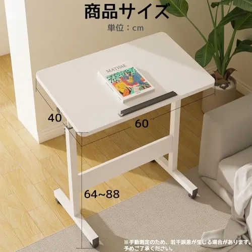 [Rshtong] 昇降デスク 折りたたみテーブル パソコンデスク 北欧 机 高さ調整 テーブル 幅60cm×奥行40cm PCデスク サイドテーブル キャスター付き 省スペース おしゃれ シンプル 化粧台 作業机 仕事用 組立簡単 (白い, 60*40cm/