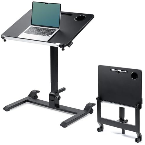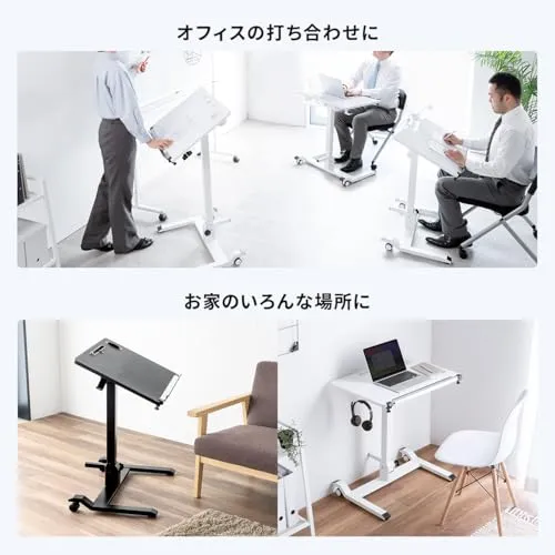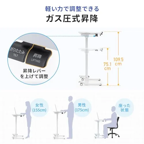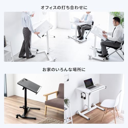 サンワダイレクト スタンディングデスク ガス圧式 折り畳み 【完成品】 幅69×奥行49×高さ75.1-109.5cm 天板角度調整 耐荷重30? キャスター付き パソコンデスク 昇降デスク ブラック 100-ERD044BK/