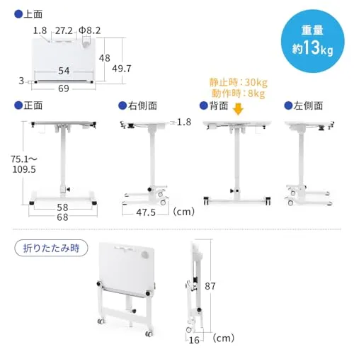 不使用時は コンパクト に折りたたむことができ、収納することができます。 キャスター 付きで、 折畳み 時も 移動 が楽にできます。