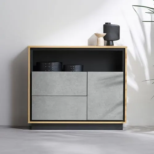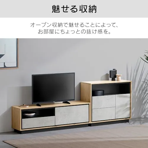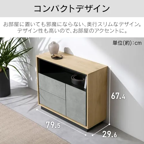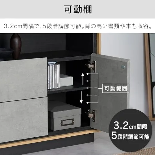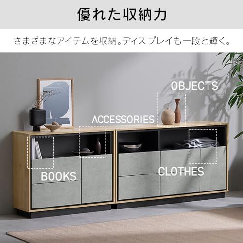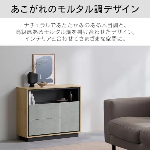 キャビネット 棚 収納 リビングキャビネット LVCM-795 ナチュラル/モルタル チェスト キャビネット サイドボード モダン タンス 棚 収納 LVCM コンパクト 可動棚 モルタル調 コンクリート調 シンプル 木目調 おしゃれ アイリスオーヤマ/