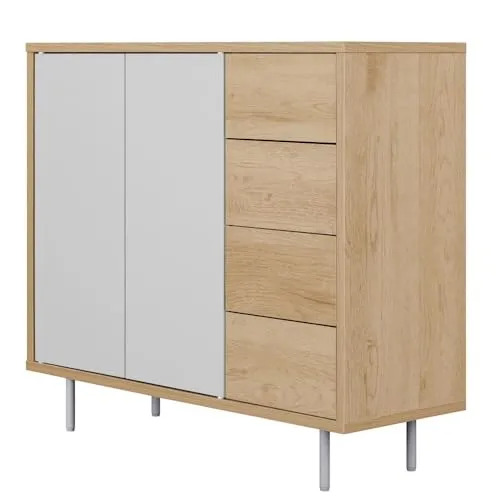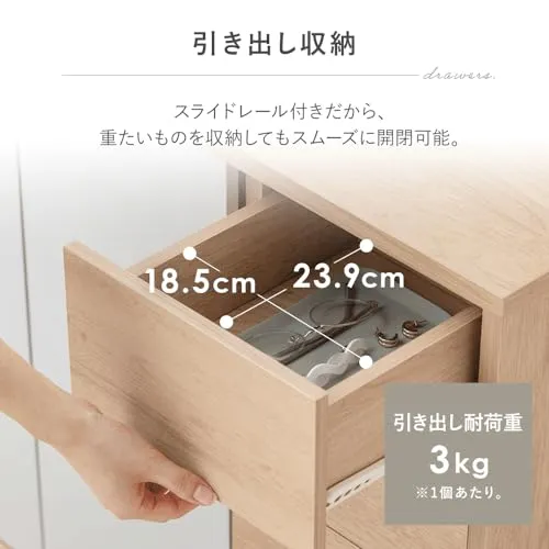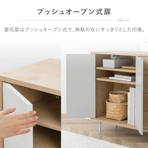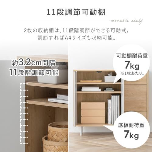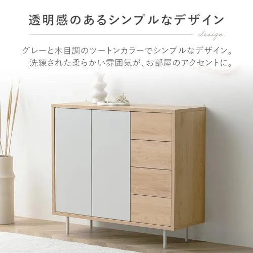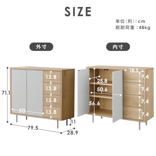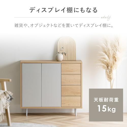 アイリスオーヤマ リビングキャビネット(幅79.5cm) ディスプレイ棚 ナチュラル/グレー 幅約79.5×奥行約28.9×高さ約71.1 耐荷重:15kg(天板)3kg(各引き出し) プッシュオープン式扉 約3.2cm間隔11段階調整可能 可動棚2枚スライ/
