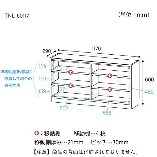 白井産業 組み合わせ自由なフリーラック シェルフ 本棚 豊富なサイズバリエーションでどんな部屋にも合わせやすい 棚板耐荷重10kg ホワイト 木目 幅117 高さ60 奥行29cm TNL-60117WH タナリオ/