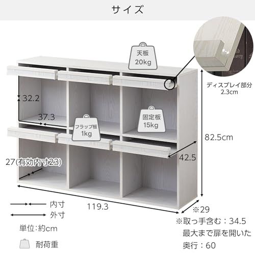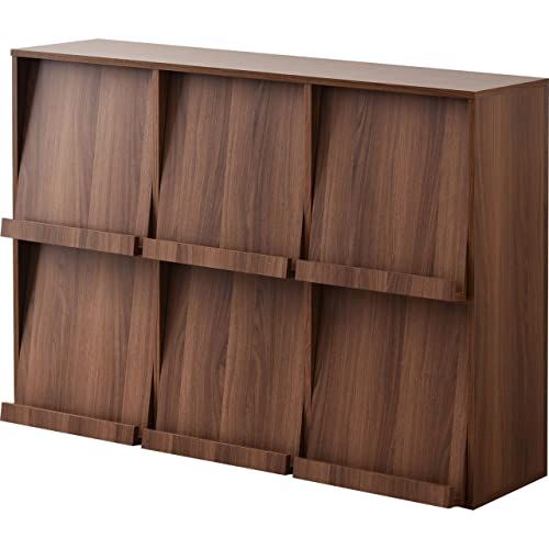 ワイエムワールド 本棚 収納棚 ディスプレイラック 幅120 奥行29 高さ82.5 扉付き フラップ扉 大容量 横長 00-100056 横型ウォールナット/