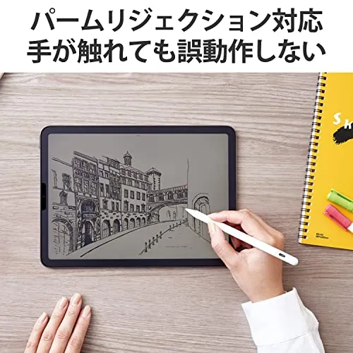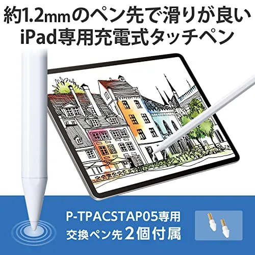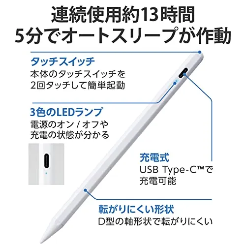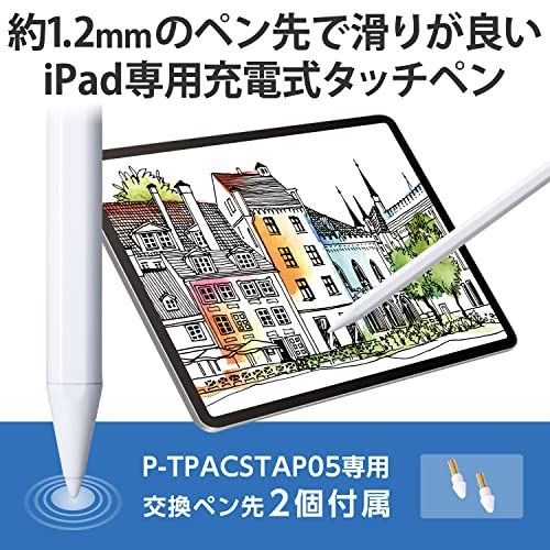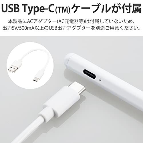 エレコム タッチペン 【 iPad専用 】 パームリジェクション対応 磁気吸着 USB-C充電 ペアリング不要 交換ペン先2個付属 ホワイト P-TPACSTAP05WH/