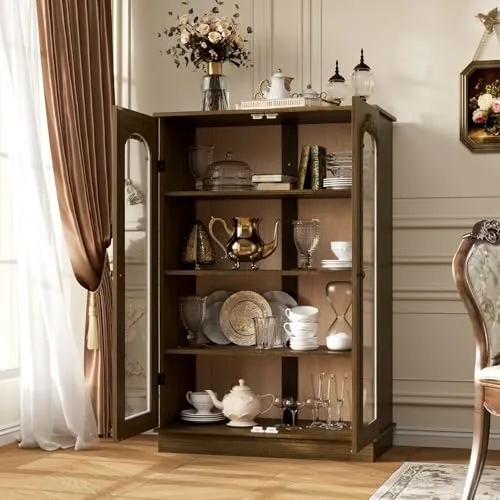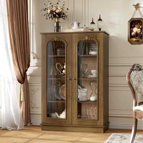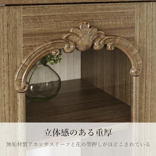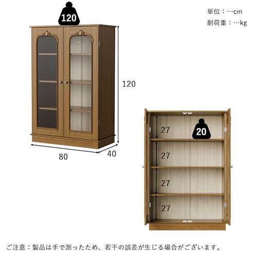 FUFU&GAGA ガラスキャビネット アンティーク調 幅80x奥行40x高さ120cm サイドボード木製 リビングボード おしゃれ インテリア家具 転倒防止 おしゃれ ウールナット/