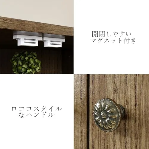 【実用的な棚間隔と使いやすさ】内部の棚は約27cm間隔で4段構成になっており、高さのあるアイテムも効率よく収納可能。扉付きデザインでほこりを防ぎながら見た目もすっきり保てます。