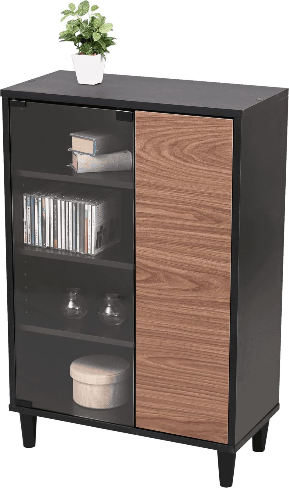 JKプラン ガラスキャビネット 黒 ブラック 幅60 奥行30 高さ90 ガラス扉 扉付き 木製 薄型 北欧 コンパクト ブラック ブラウン 黒 茶 TSFSI0004BKBR/