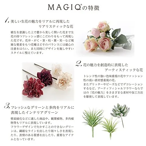 【MAGIQ】マジック ・今までの造花にはないリアルな品質のアーティフィシャルフラワーをお届けします。 ・生花にはない豊かな表現力がアーティフィシャルフラワーの持つ大きな魅力の一つ。 ・アーティフィシャルフラワーなので曲げたり切ったり、自在に形を変えることも可能。 ・枝や葉の形を整えてから飾ると、一層いきいきとした表情に。 ・日々の暮らしの中で、季節の移ろいとともに、花のある暮らしを是非お楽しみください。 ・屋内装飾用 葉L15×L27×W32cm 主な素材:塩化ビニール 原産国:中華人民共和国 フェイクグリーン 造花 グリーン リーフ 多肉植物 アーティフィシャルフラワー(造花)なので陽の届かない場所でも気軽にお楽しみいただけます。 吊るしたり、絡めたり、まるめたりと生花では難しいアレンジが簡単にできます。 屋内装飾用のため、屋外でのご使用には適しておりません。水や摩擦などにより色落ちする可能性があります。 配送について、商品のサイズや配送先都道府県によって最適な配送業者を選択しております。 業者・配送方法の指定は承れません。ご了承ください。 万が一の不着、紛失、誤配送の場合など、最後まで責任もって対応致しますのでご安心下さい。 宜しくお願い致します。
