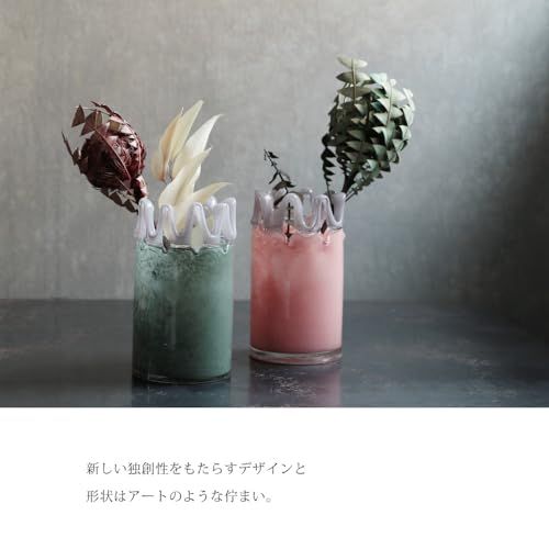 グラデーションと不規則なエッジが、ドライフラワーの自然な風合いや繊細な形状を際立たせ、花器全体にアート作品のような魅力を加えます。