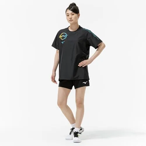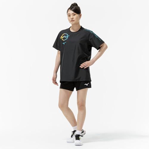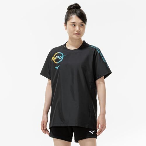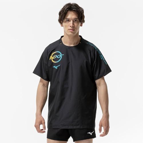 新品 バレーボールウェア N-XT半袖ピステ V2MEC500 ユニセックス ブラック×カプリブリーズ L