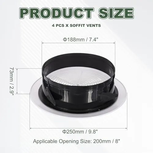 適用開口サイズ:200mm / 8インチ;梱包リスト:ソフィットベント4個