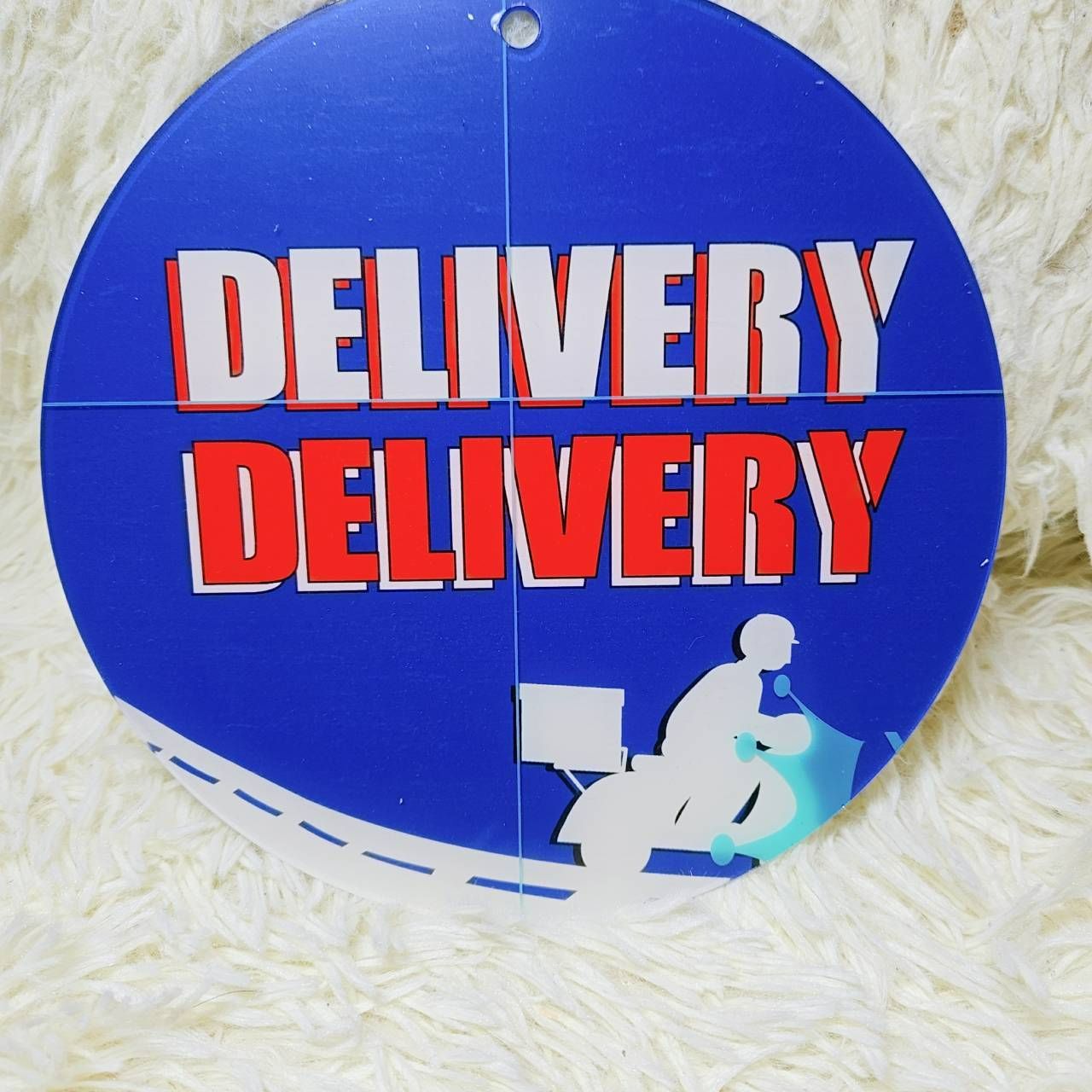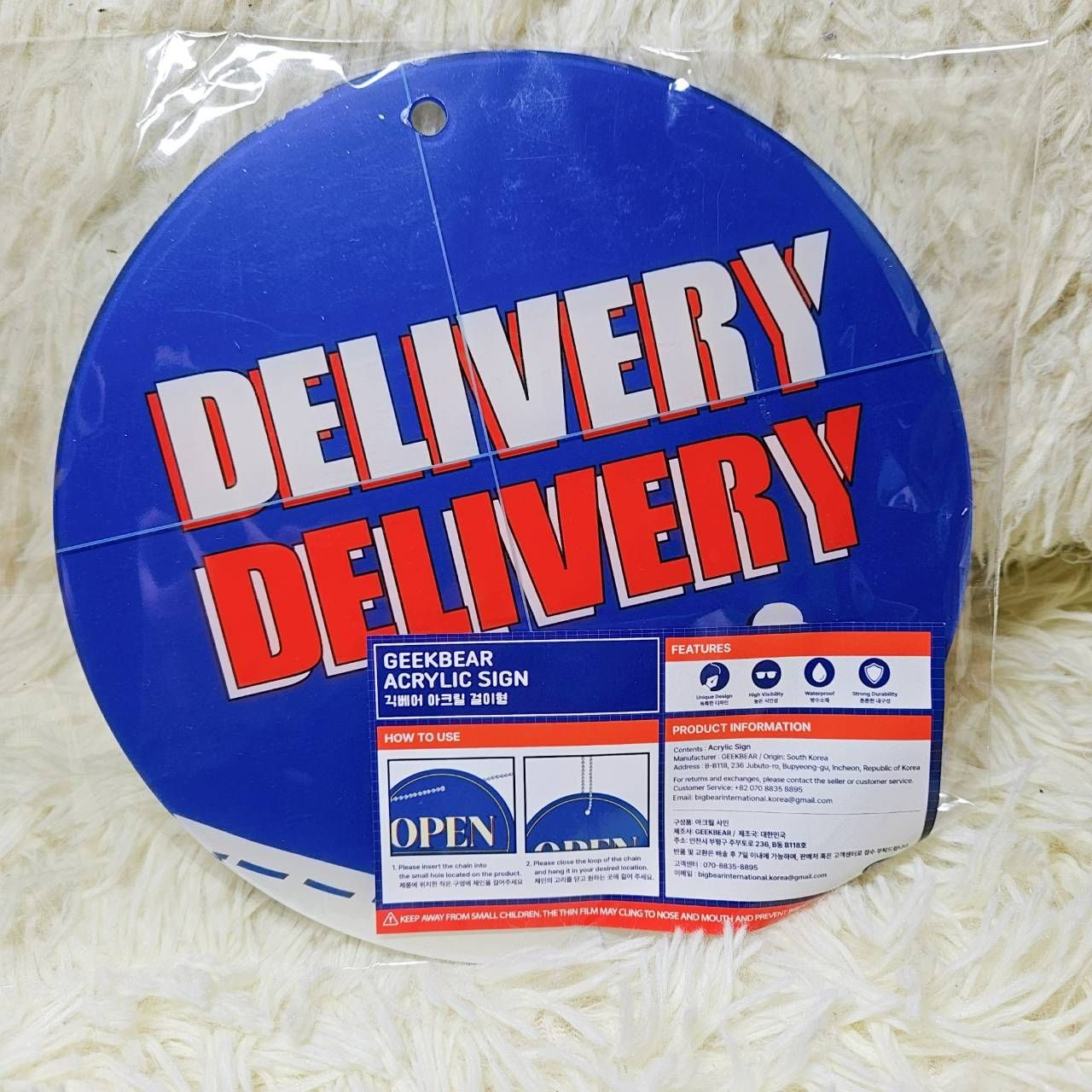 GEEKBEAR デリバリーサイン アクリル 吊り下げ 看板 配達中 店舗 屋外可 ギークベア 案内プレート 両面デザイン 高視認性 防水 耐久性 営業用 出前 宅配 デリバリーサービス ブルー