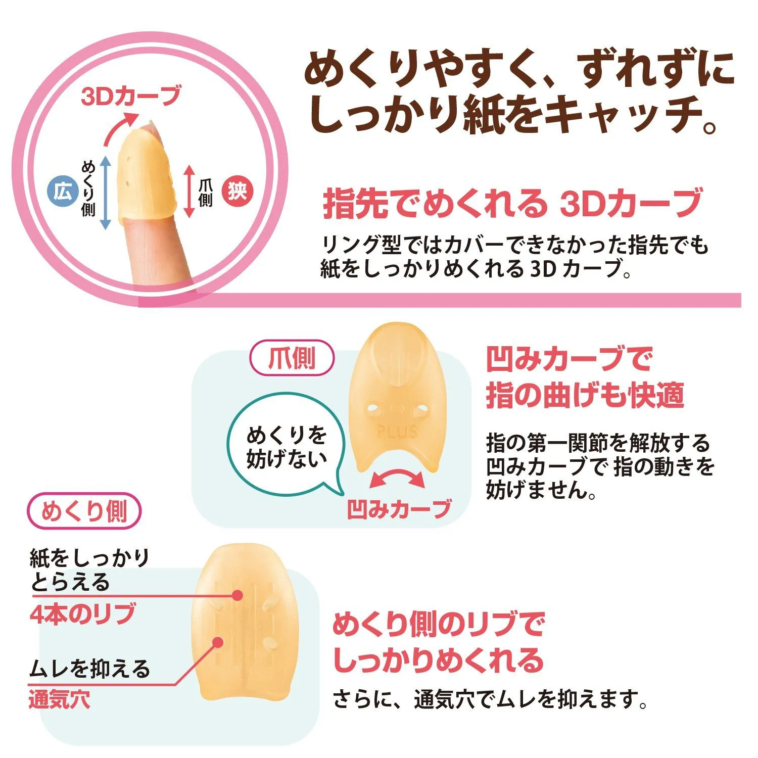 めくり性能に優れ、指にやさしくフィットし、高い摩擦力で紙をしっかりとキャッチ