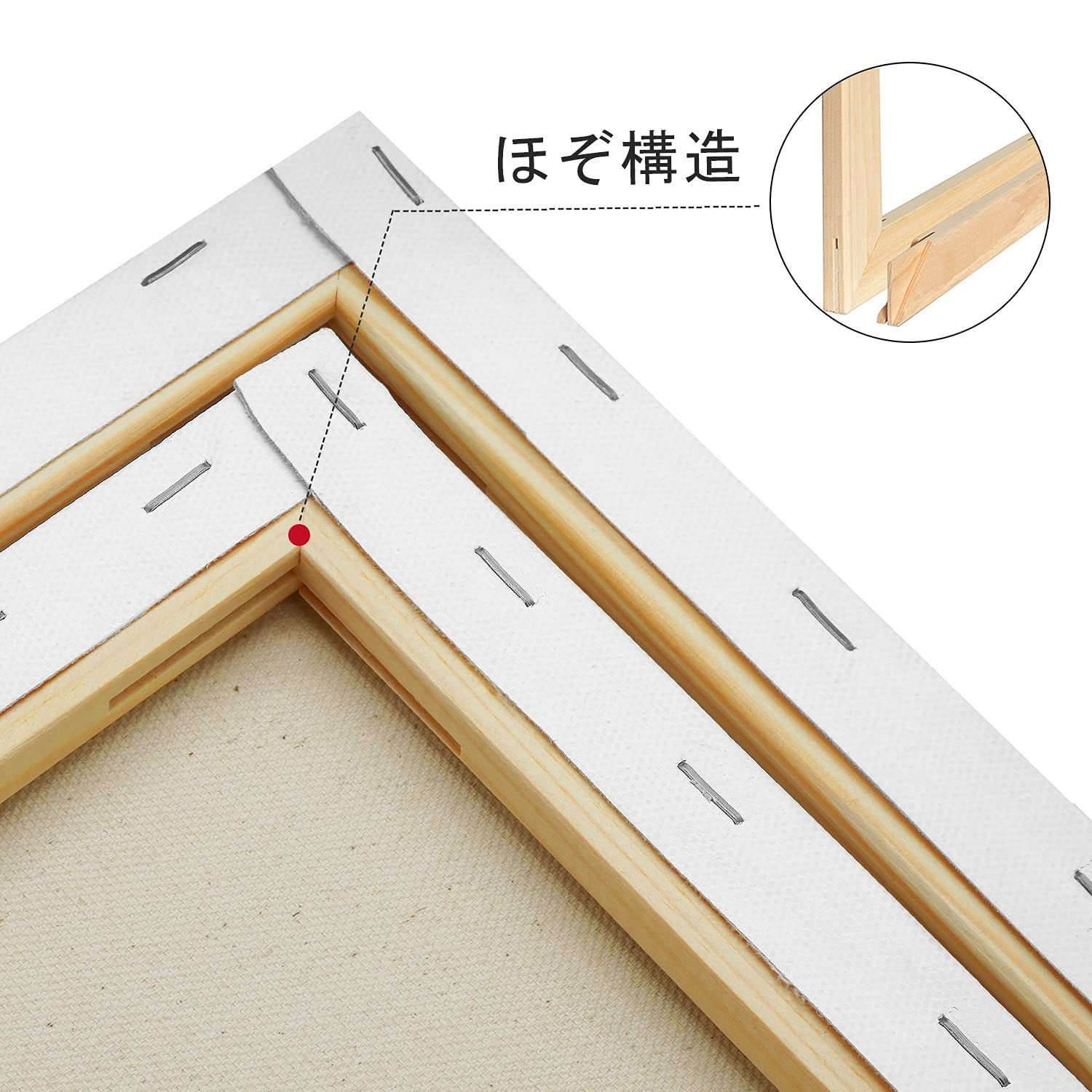 松木の張りキャンバスの枠 - 表装と壁掛けやすいように作られた標準サイズです。ほぞ穴とほぞが接続による木構造は、フレームの堅牢さを確保しています。キャンバスは枠にしっかりと引き伸ばされ、裏に釘付けされて、きれいな縁を形成します。