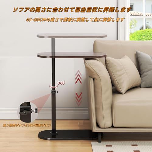 サイドテーブル 昇降式 【2025業界新進化 介護テーブル】可動式テーブル 360度自由回転 高さ調節 ソファーテーブル耐水 高温に強い 安定 耐荷重がいい 耐久性 小型 ベッドサイドテーブル 省スペース おしゃれ 組立簡単 小型家具 家用 介護用 (ブラッ/