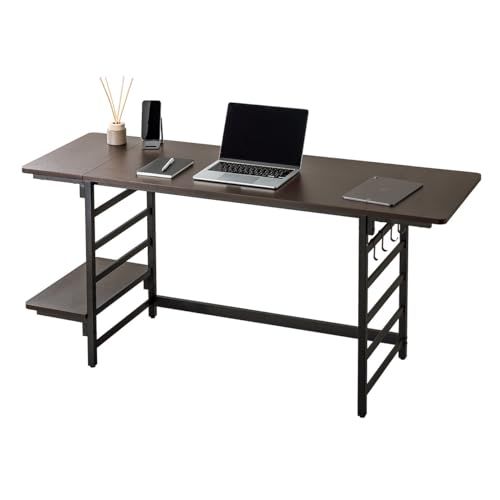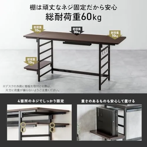 サンワダイレクト パソコンデスク 棚付き 棚板自由設置 幅100(最大150)×奥行50cm 棚板3枚 フック付き 耐荷重60kg PCデスク 収納付き 机 木目調 100-DESKH080M/