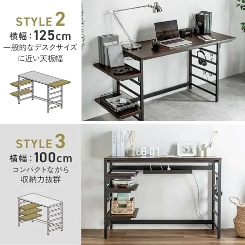 幅100cm 奥行50cm の デスク に3枚の 棚 板を組み合わせて、ワークスペースを自由にレイアウトできます。