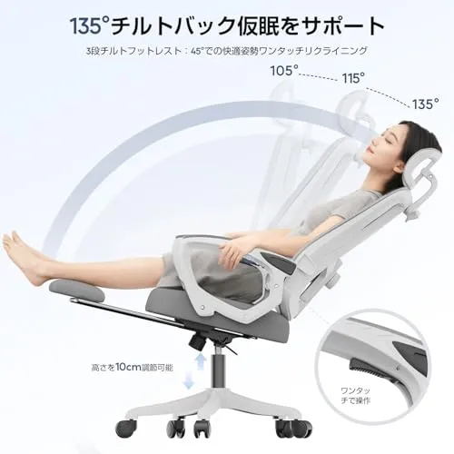 オフィスチェア 椅子 デスクチェア オフィスチェア メッシュ ハイバック リクライニング フットレスト付き 勉強椅子 パソコンチェア ゲーミングチェア 在宅ワーク 疲れにくい 150kg耐荷重 pcチェア 調節可能腰サポート 調節ヘッドレスト 静音キャスター/