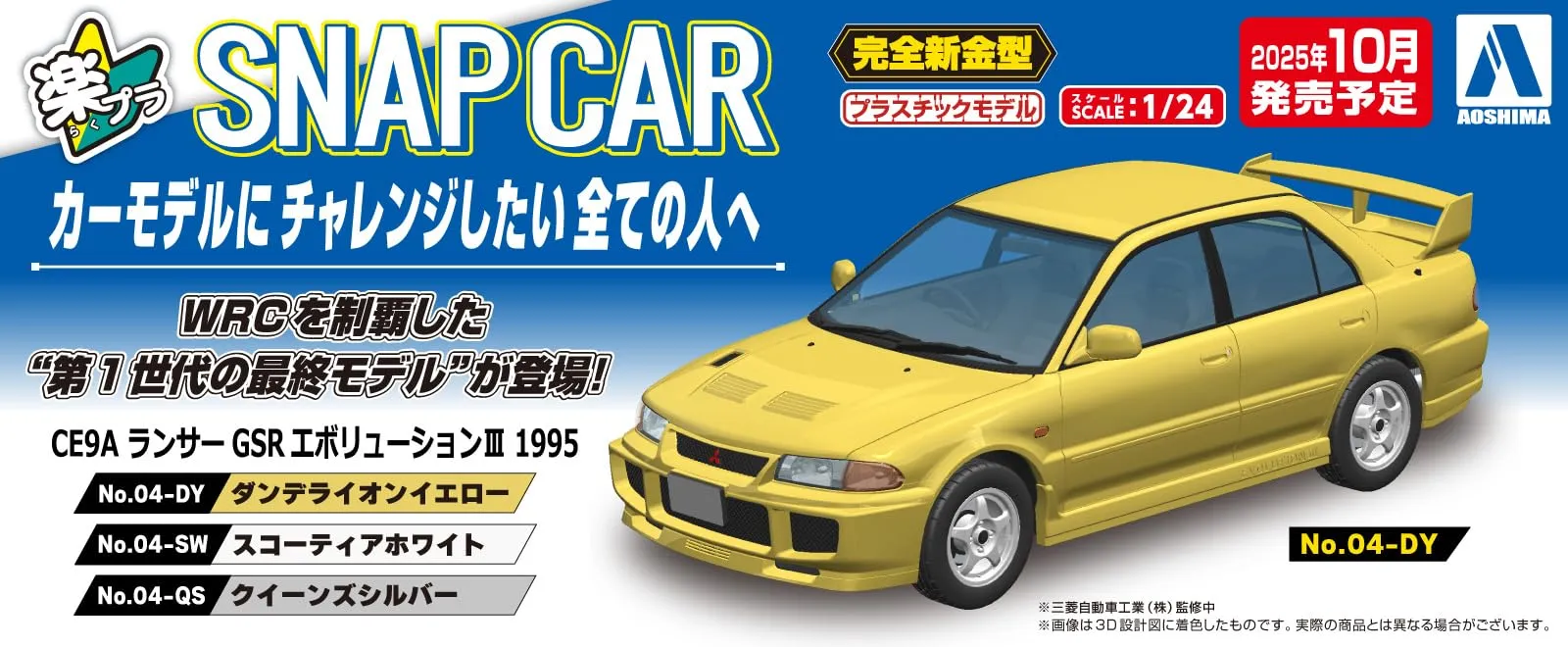 青島文化教材社(AOSHIMA) 1/24 楽プラ スナップカー No. 04-DY CE9A ランサーGSRエボリューションIII 1995 ダンデライオンイエロー 色分け済みプラモデル [ダンデライオンイエロー]