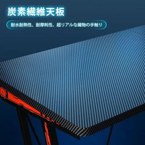 【炭素繊維天板】ゲーミングデスクの天板は炭素繊維、特殊な炭素繊維のテクスチャー表面、耐水性、耐熱性、腐食性、摩耗性、触り心地、織目が超リアルで光沢のある見た目と良い手触り心地は特徴です。