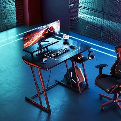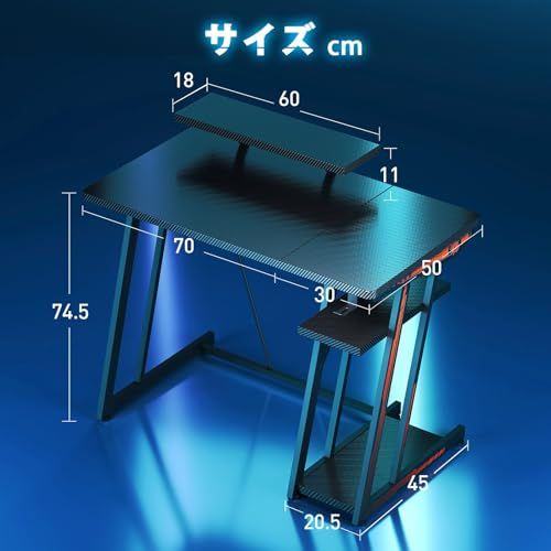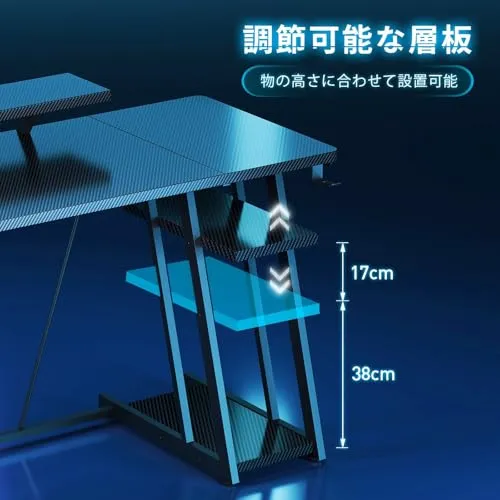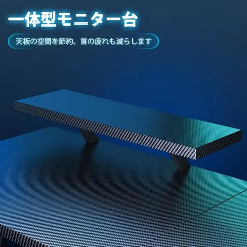 ゲーミングデスク 100cm 2段収納棚付き 高さ調整可能 カーボン製ゲームデスク 60cmモニター支架(eスポーツ/在宅ワーク対応)ブラック/