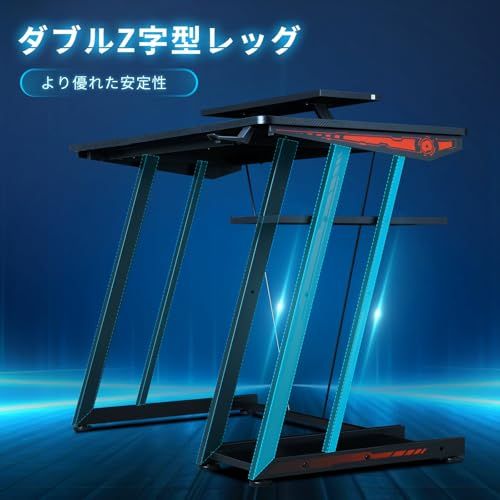 【優れた安定性】 YeTomゲーミングデスクは、ダブルZ字脚のデザインで、高品質な炭素鋼を採用し、本物の鉄骨構造。他の机に比べて支持点が多いので、更に安定性を確保しています。足のアジャスターは高低差のある地面でも脚部を調節することで水平を維持できます。