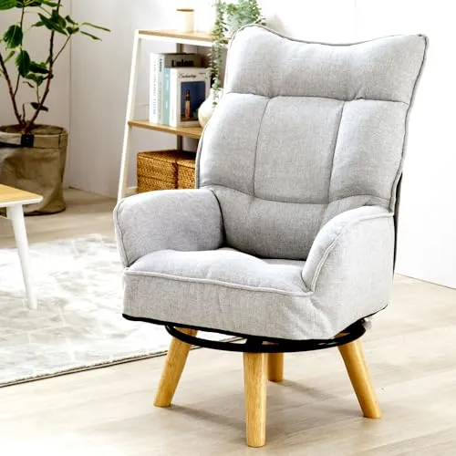 ドウシシャ 包み込まれる座り心地 ハイバック 回転式 一人掛けソファ ライトグレー EKHC-LGY 幅64cmx奥行62cmx高97cm 座面高さ33cm 授乳チェア 授乳椅子 折りたたんでコンパクトに収納 回転座椅子 高座椅子 パーソナルチェア/
