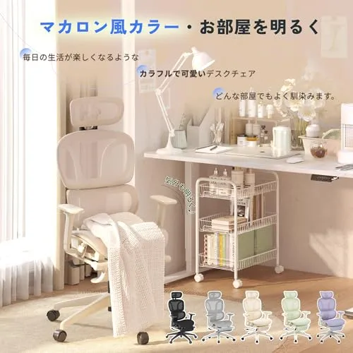【オフィスチェアC7 Lite・仕様】サイズ:幅60.5cm奥行66m高さ106.5118cm(座面高さ4450.5cm) カラー:バニラホワイト、アボカドグリーン、ココナッツグレー、ラベンダーパープル、ノワールブラック