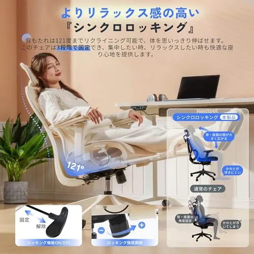 FLEXISPOT オフィスチェア デスクチェア C7 人間工学 エルゴノミクスチェア メッシュチェア 独立型ランバーサポート リクライニング可能 シンクロロッキング 座面奥行調整可能 2Dヘッドレスト 4Dアームレスト フットレスト付き (C7 Lite,/