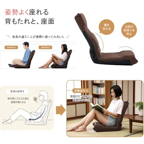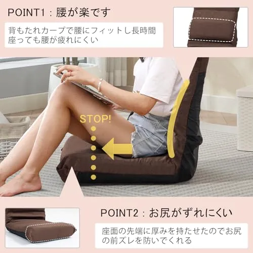 座椅子 姿勢よく座れる リクライニング 折りたたみ コンパクト フロアチェア ふあふあ 腰が痛くならない 1人掛け 6段階調節 通気型/