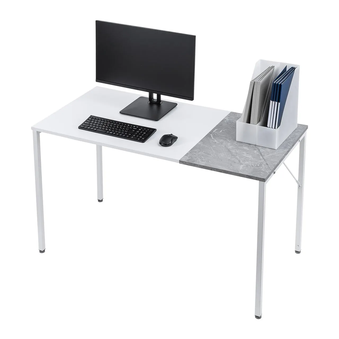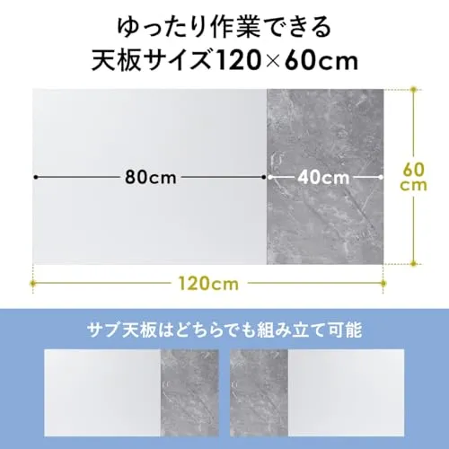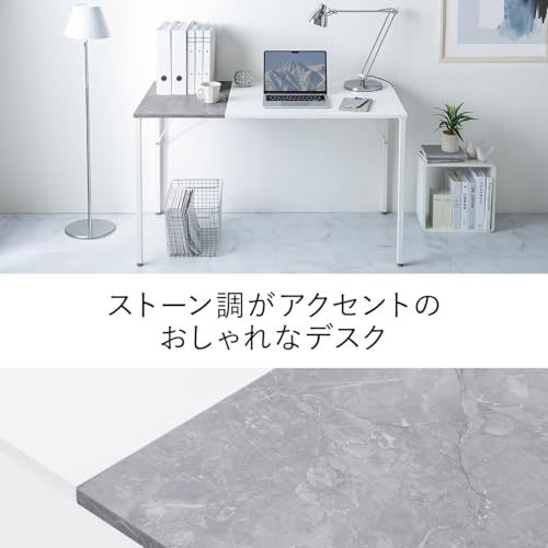 サンワダイレクト パソコンデスク 幅120×奥行60cm モニターアーム対応 大理石調 机 デスク PCデスク 作業台 ホワイト×ストーン 100-DESKF062W/