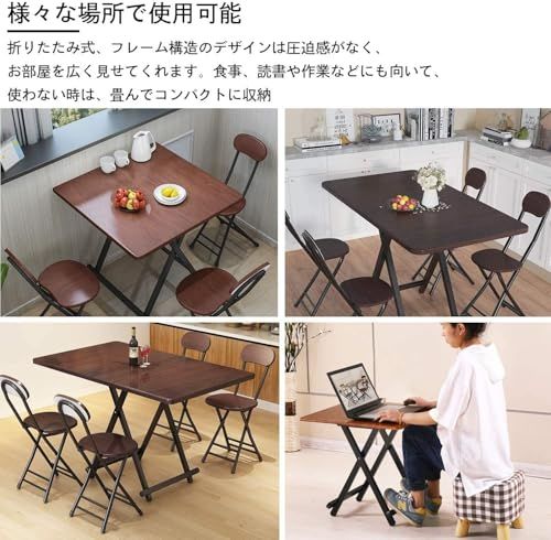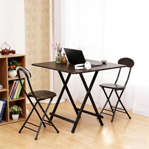 Probasto 折りたたみテーブル&チェアセット ダイニングテーブル 約80×80×74cm 折りたたみチェア 幅25×奥行32×高さ77cm パイプ椅子 完成品 組み立て不要 作業 食事 在宅勤務 3点セット (ダークブラウン)/