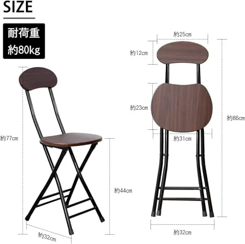 【チェア商品仕様】サイズ:(約)幅25奥行32高さ77cm、座面高さ/約44cm、折りたたみ時:(約)幅32奥行5高さ86cm、耐荷重:約80kg、重量:約2kg、