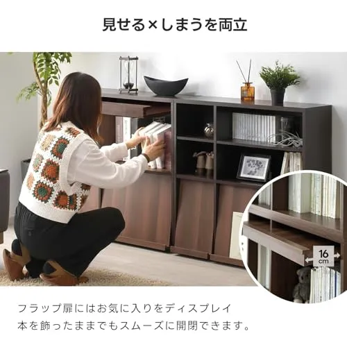 ワイエムワールド 本棚 棚 ディスプレイラック 収納ラック おしゃれ 扉付き 2個セット 大容量 B-AB-0009 ウォールナット/