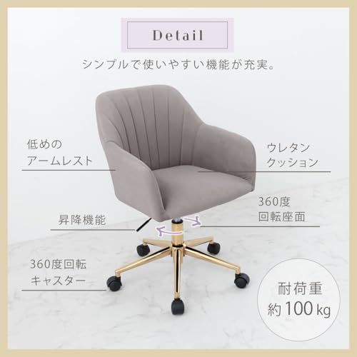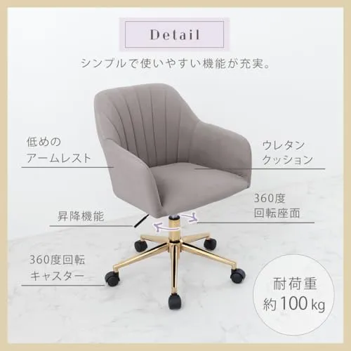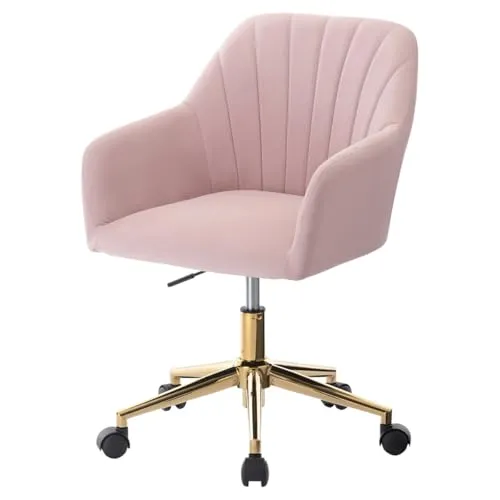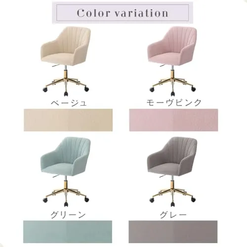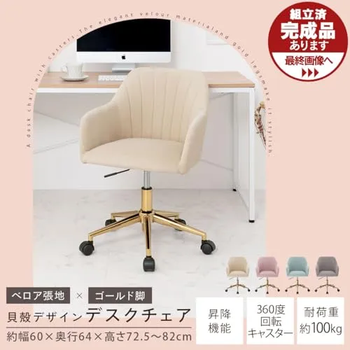 ぼん家具 デスクチェア おしゃれ ベロア チェア 回転 椅子 昇降式 キャスター ゴールド脚 オフィスチェア シェル ドレッサーチェア かわいい 韓国 インテリア モーヴピンク/