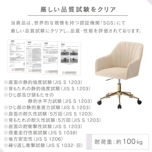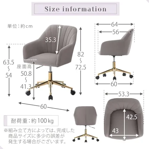 材質 張り材:ポリエステル100% 背部、座部:合板 クッション材:ウレタンフォーム 脚部:スチール(ゴールドメッキ) キャスター:ナイロン