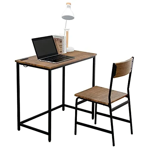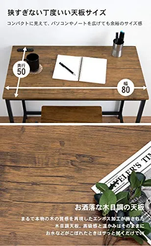 萩原 デスクセット チェア付 デスク イス セット【セット買い】 コンセント付き 幅80 勉強机 テレワーク ブラウン LDC-4696BR/