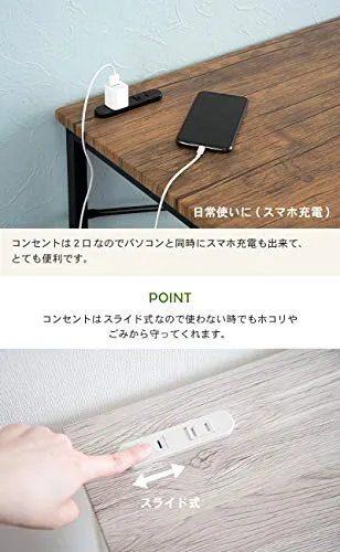 【デスクワークに最適なチェアセット】PCやタブレットなどを充電できる1500Wの2口コンセント付きなので、在宅ワークやオンライン授業などでも活躍。延長コードを買い足す必要がありません。
