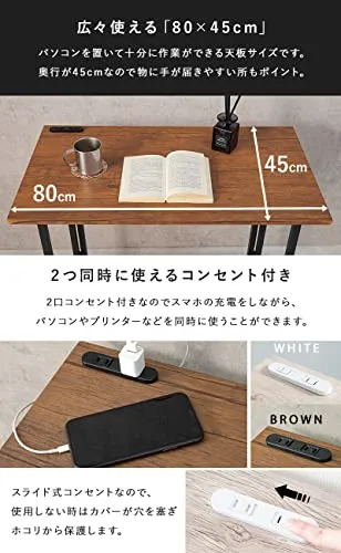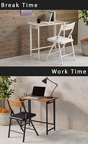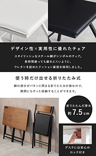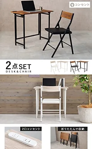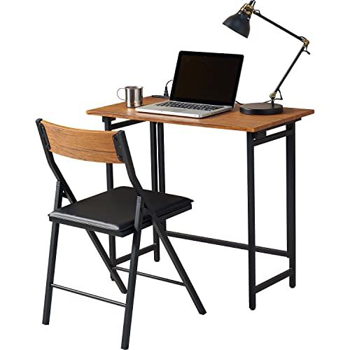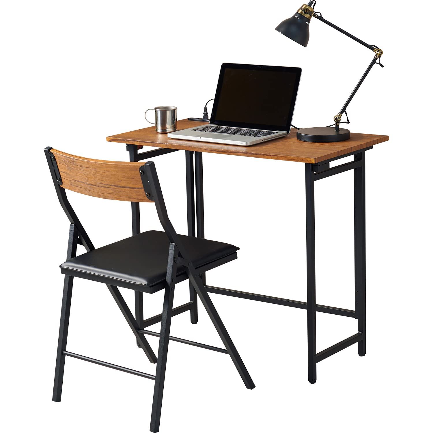 萩原(Hagihara) デスク セット チェア 椅子 折りたたみ 【クッションチェア】 コンセント 付き 1500W 幅80 奥行45 高さ72 勉強机 テレワーク ブラウン LDC-4778BR/