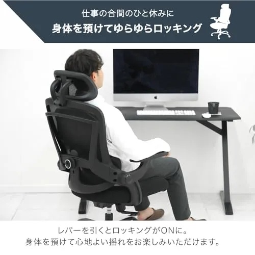 タンスのゲン オフィスチェア 独立式 ランバーサポート メッシュ 昇降式 アームレスト ロータリーアーム ロッキング ヘッドレスト デスクチェア 椅子 31500046(95365)/