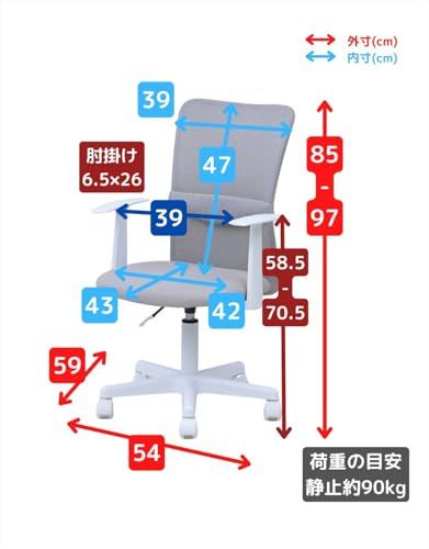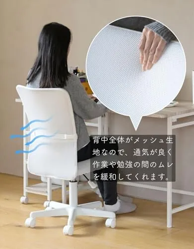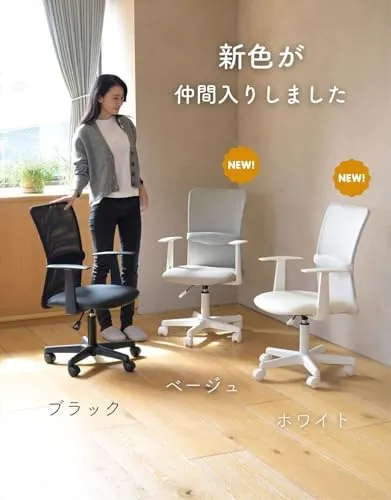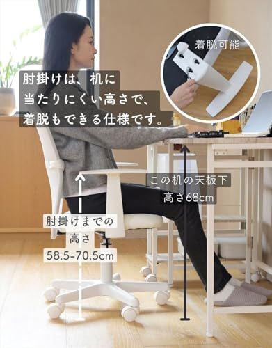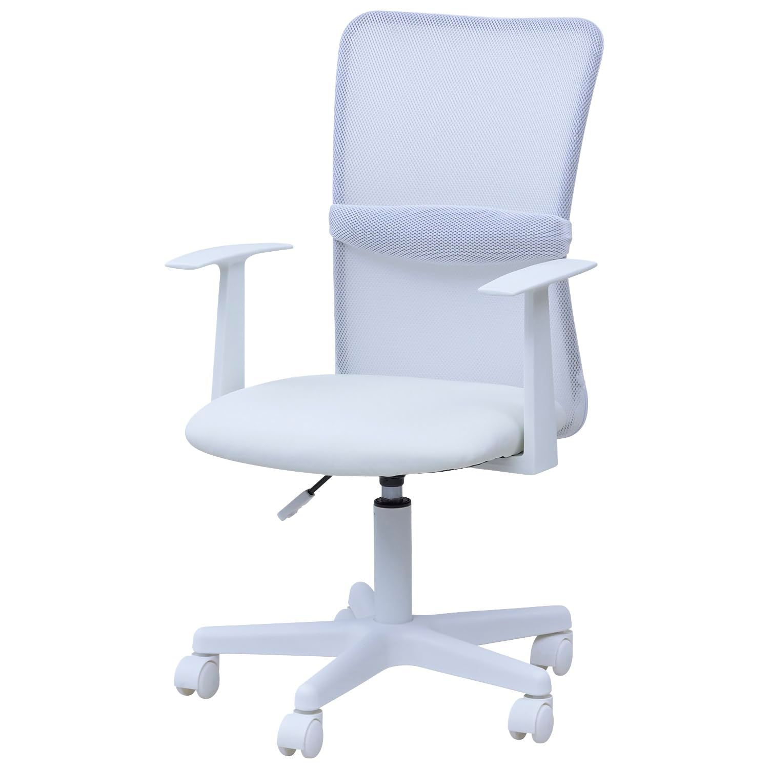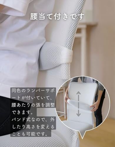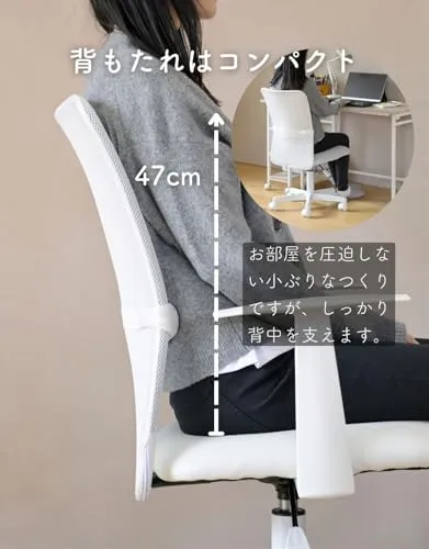 [山善] 肘付き オフィスチェア (背部メッシュ・座面合皮) 通気性 クッション性 腰サポートバー 無段階昇降 360度回転 コンパクト ホワイト EHL-P51A(NWH)/